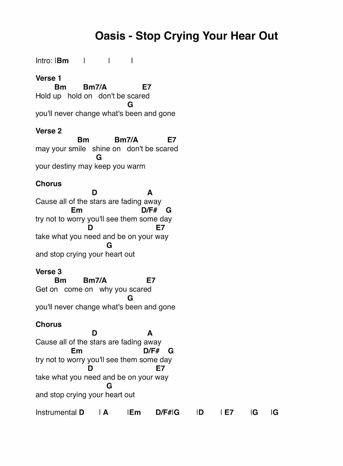 Stop Crying Your Heart Out - Oasis Guitar Chords